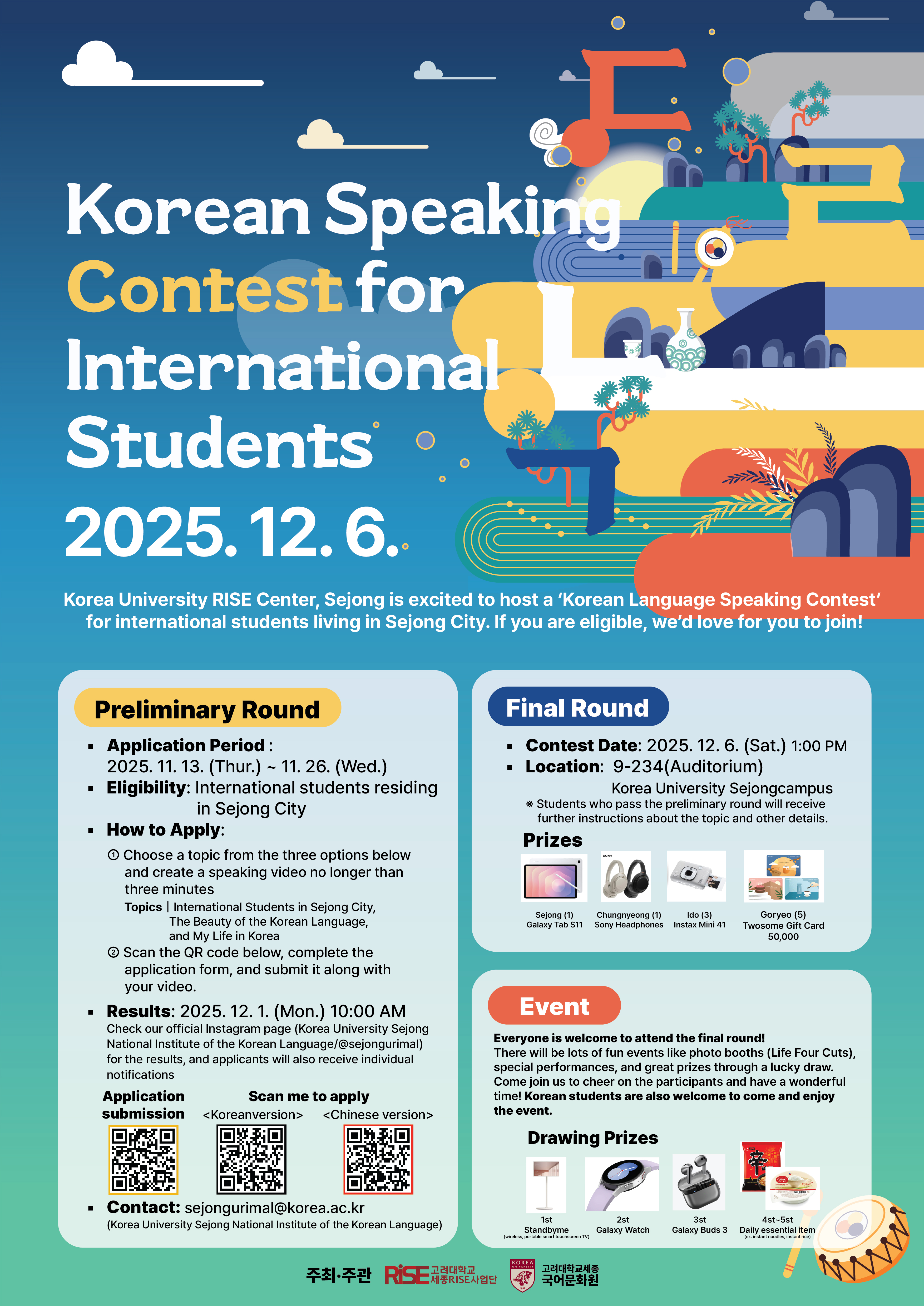 [세종RISE사업단]외국인 유학생 한국어 말하기 대회 모집 안내