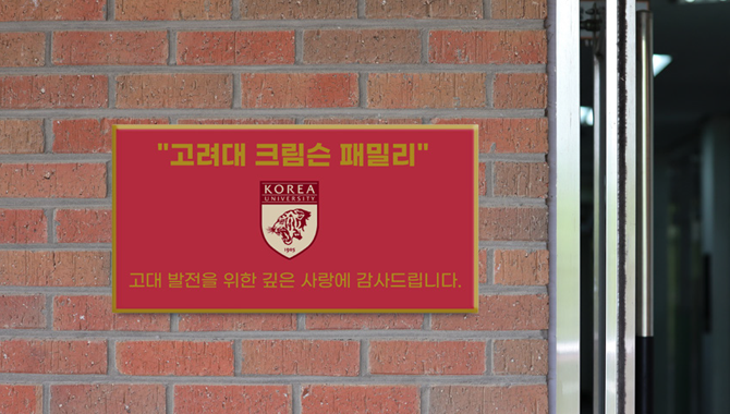 ‘고려대 크림슨 패밀리’ 캠페인을 통해 모금된 기부금은 더 강한 고려대학교, 더 빛나는 미래를 향해 나아가기 위한 발전기금으로 사용됩니다.